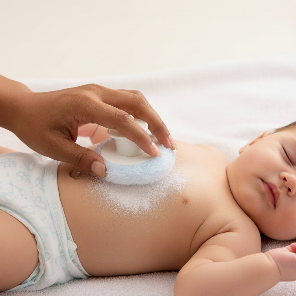 Soft applicator puff for gentle baby skin contact
